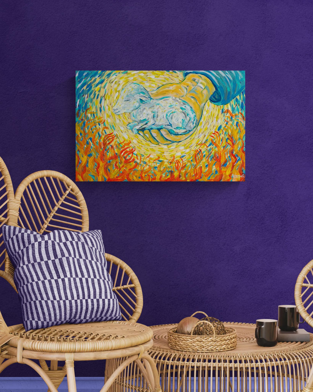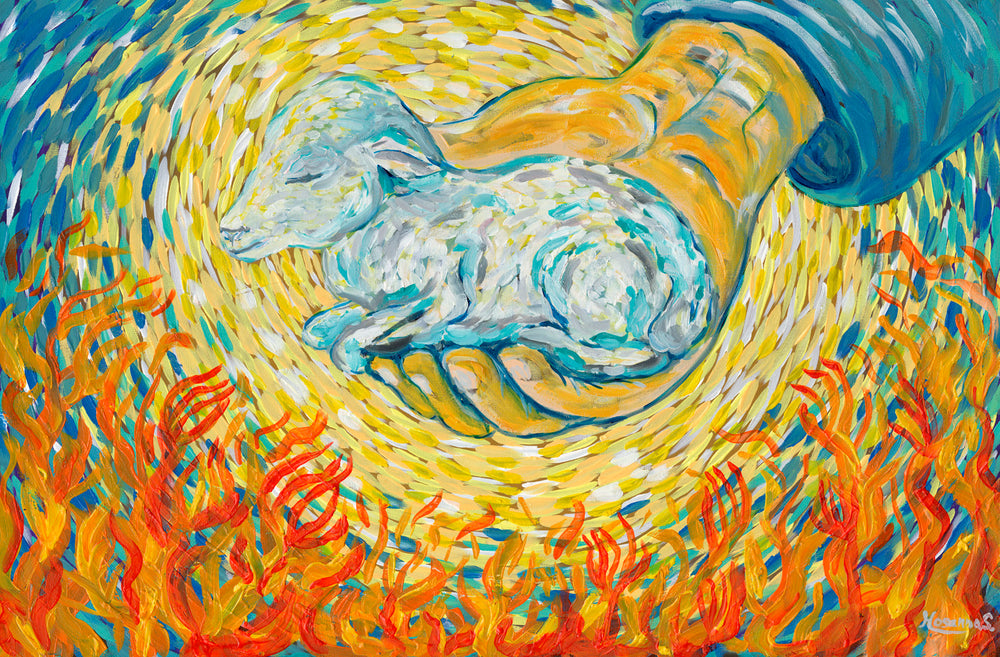 This painting was inspired by the Bible verse John 10:28-29 ESV